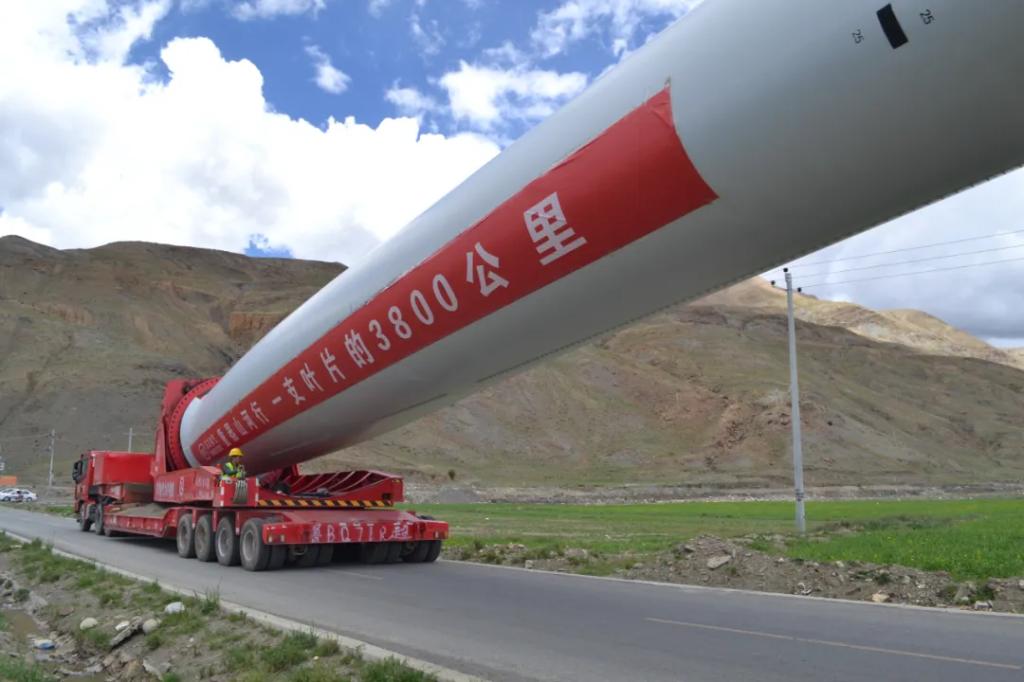 一波未平,一波又起。7月5日下午4时许,车队抵达那曲路段,韩婷婷接到头车司机电话,“因近期西藏大雨,原先规划的运输路段遇到道路修复施工,绕道则需耗费大量时间,叶片很可能无法按期驶入高速运输”。得知突发状况,东方镖师团队立即与当地交警部门取得联系,详细说明情况并请求协助。地方交警部门迅速启动应急响应机制,调派了清障车和人力前往现场,对叶片运输保障提供了有力支持。