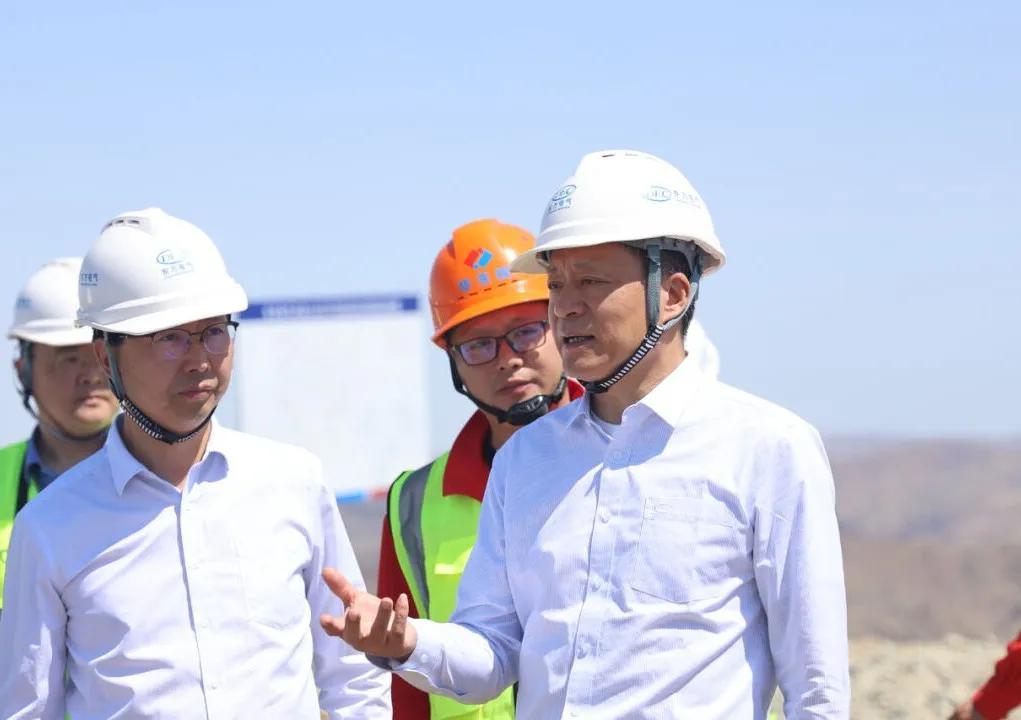 仪式后,在木垒100万千瓦风电项目现场,集团公司审计监督部党支部、东方风电党委、东方风电新能源工程事业部党支部联合组织“战新产业合力攻坚”主题实践活动,俞培根以普通党员身份参加活动,与党员同志一道开展现场调研,实地踏勘基础浇筑过程,详细了解项目施工进展情况,并与现场施工人员进行亲切交流。