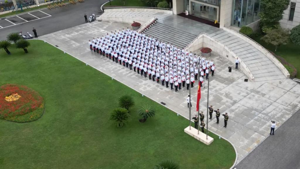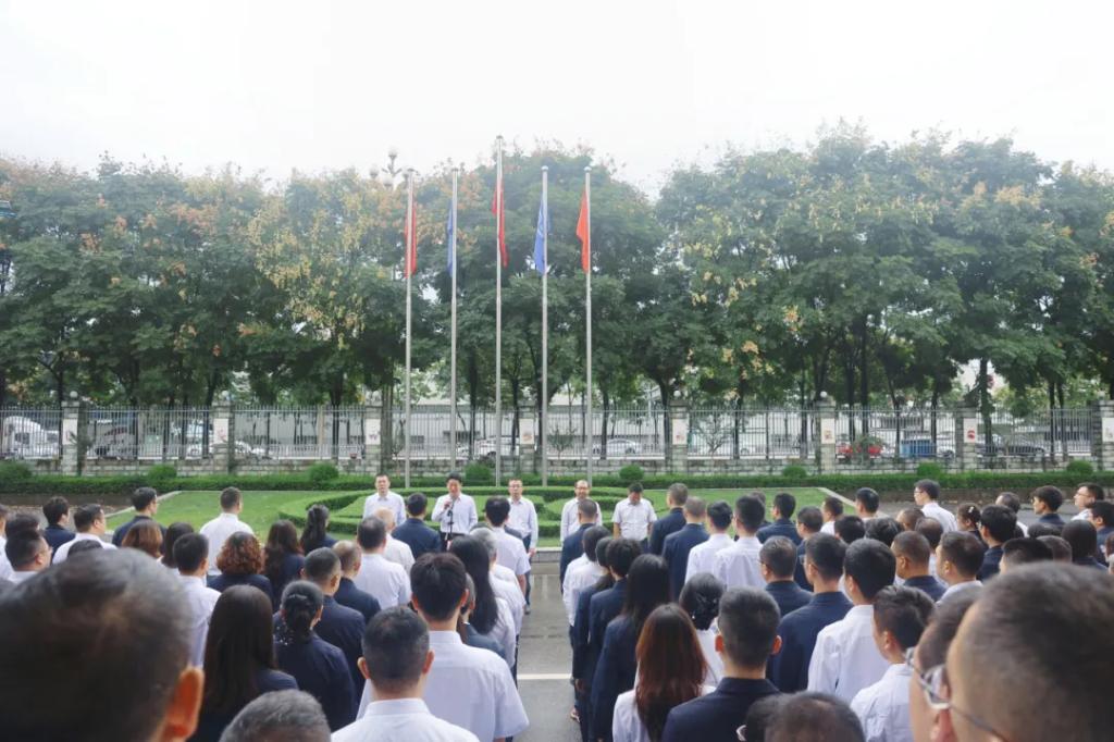 总部职能部门、事业部,东方国际、东方财务、东方投资、东方研究院、东方物产、东方共享等总部园区部分干部职工参加升国旗主题活动。