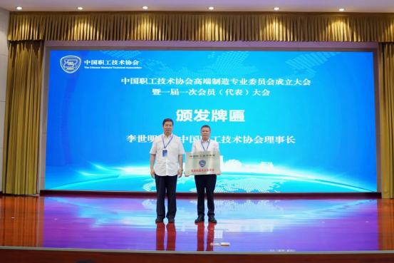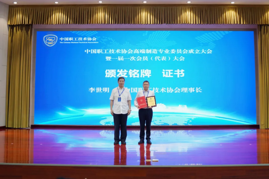 会上,李世明宣布中国职工技术协会高端制造专业委员会(以下简称“高端制造专委会”)正式成立,并向高端制造专委会颁发匾牌,向高端制造专委会会长、集团公司总经理助理曾小平颁发铭牌和证书。刘伟宣读关于高端制造专委会成立的批复。