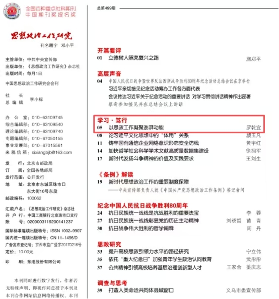 《思想政治工作研究》刊发罗乾宜署名文章